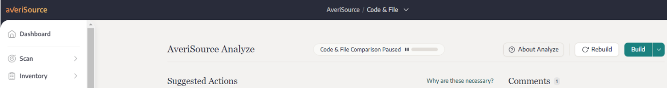 Because the Code & File Comparison analysis can be time consuming, and involves all entry points, AveriSource Platform 2.1.1 introduces the ability to execute the Code & File Comparison analysis independently for all entry points in the project for AveriSource Analyze. AveriSource Platform 2.1.1 also lets the user pause Code & File Comparison analysis to complete at a later time.